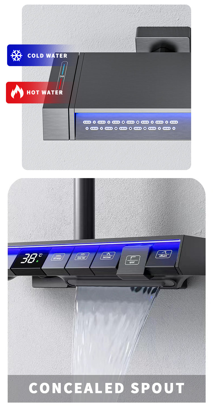 -assembly (includes engine, aerators, structure, restrictors, back flow preventers, sprayer hoses, braided supply line hoses which encompasses nylon, silicon and stainless steel, etc), LED function.